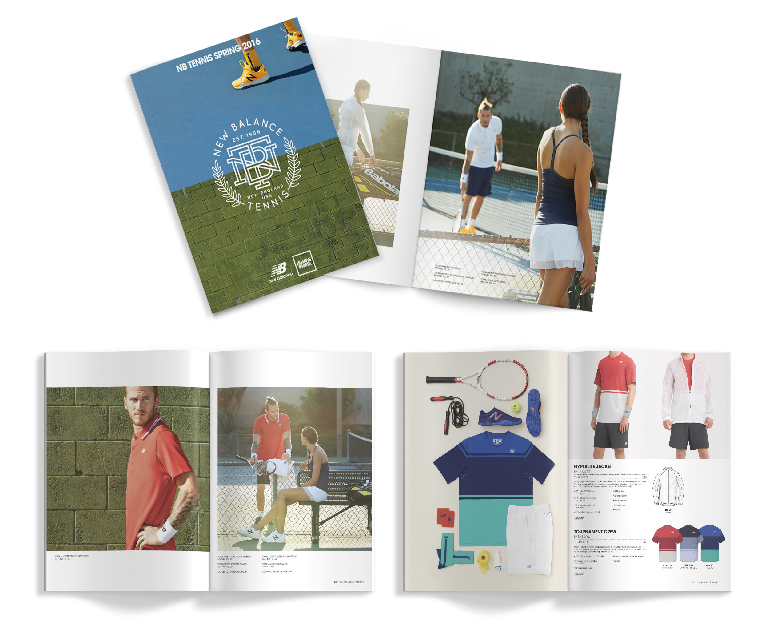Collaborated with creative team at Sauce Creative Group and freelance photographer Blake Sinclair to design and produce a catalog and webpage for a New Balance Tennis campaign.
